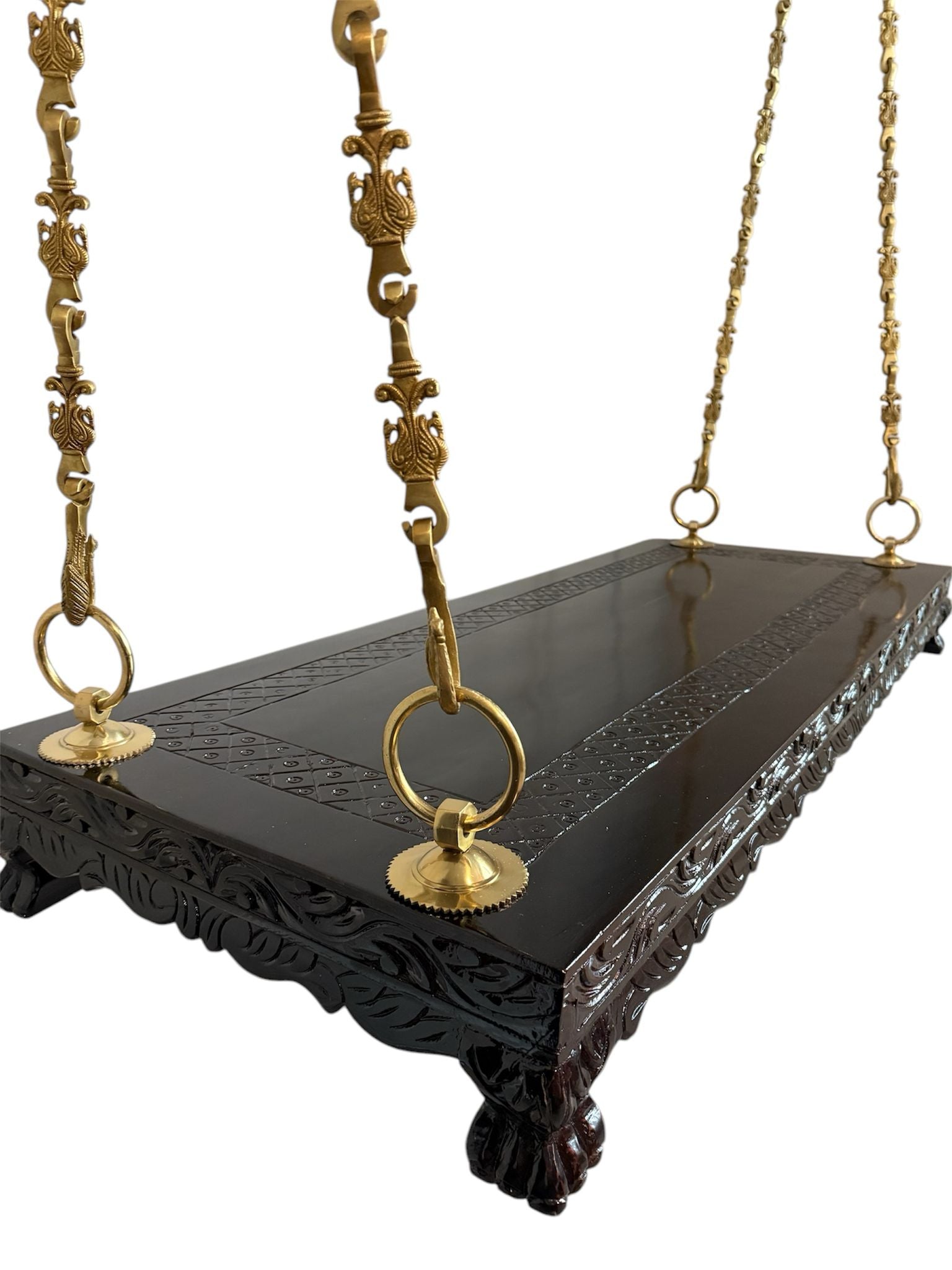 This traditional yet modern Jhula Seat is made of durable Solid Wood, and will fit into any space easily. Its sleek plank style is clean, yet showcases the traditional hand carving on the seat base along with intricate work along the perimeter rim.